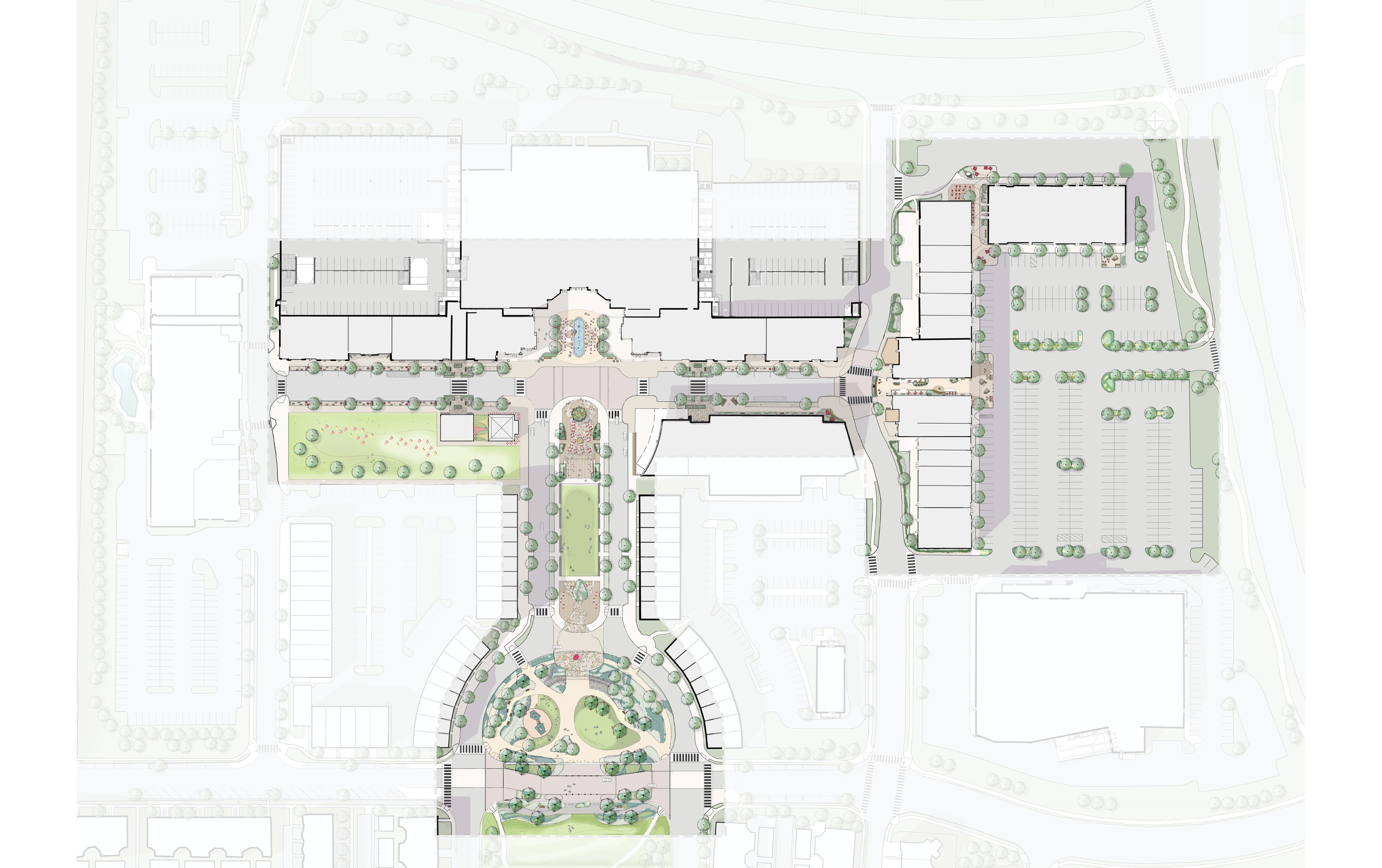 For this Northern Virginia Town Center Repositioning, Nahra was tasked with developing a placemaking and architectural master plan renovation strategy. The existing Center is unique in that it combines a traditional grocery anchored shopping center with a town center planning concept. The overall goals, among many, are to more strongly connect the concepts, improve the pedestrian and storefront experience, increase usage of outdoor spaces and modernize the building aesthetics.